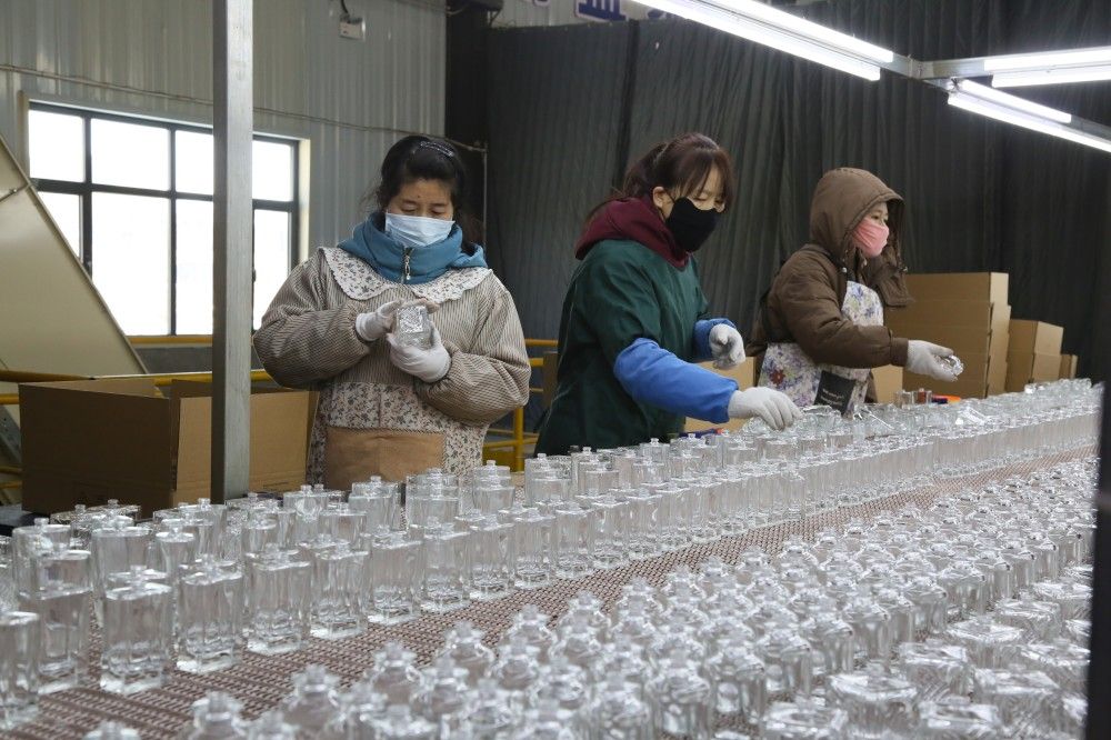 春节假期一过,宁夏固原市彭阳县美华玻璃制品有限公司的生产车间内已是一片热火朝天的忙碌景象。工人们全神贯注地观察着经过高温塑形后的香水瓶,仔细检查后,将毫无瑕疵的香水瓶一一裹上包装纸。