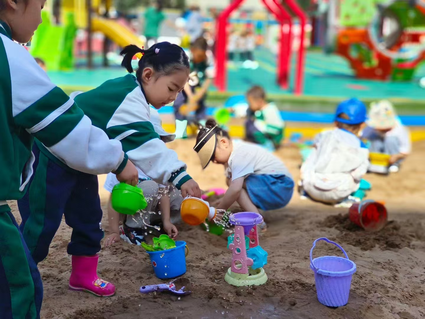 彭阳县幼儿园的小朋友们开心玩耍。